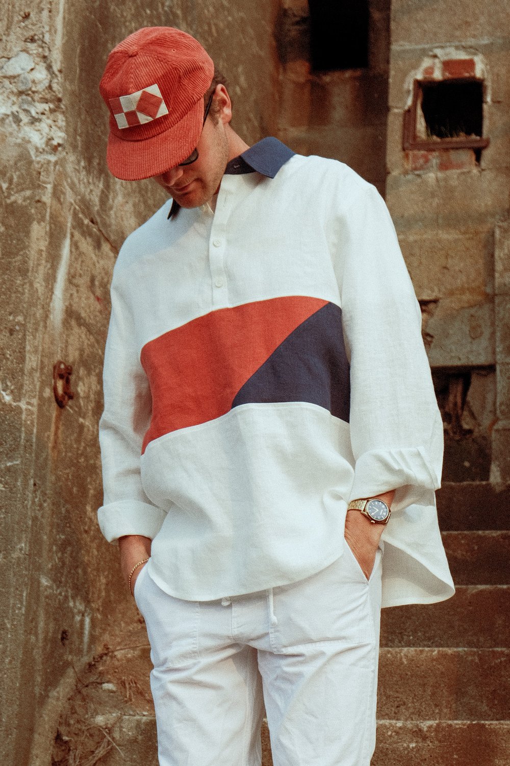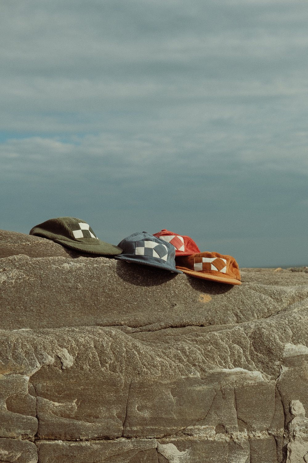 Vintage-style hats in fat corduroy. The patch design is a nod to the letters 'UF' in the nautical flag alphabet.